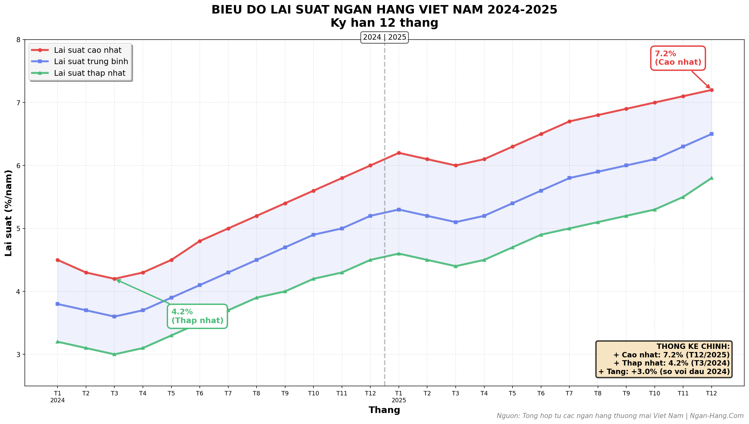 Kỳ Hạn 9-12 tháng: Lãi suất trung bình 5.5-6.5%/năm, cao nhất 7.0%/năm